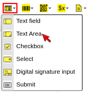A Text Area allows you to add an interactive multi-line text input field into your PDF document.